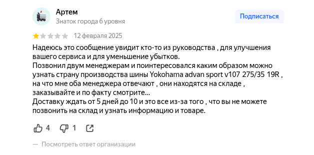 На рынке запчастей в РФ сейчас хватает проблем со стабильной логистикой, ведь многие дилеры закрылись. Водителям приходится активно искать альтернативные каналы покупки колес, а пустые склады закономерно привлекают новых коммерсантов с параллельным импортом из Азии. Давайте же разберемся, стоит ли доверять магазину «4 Колеса | шины | диски» и что о нем думают бывшие клиенты.