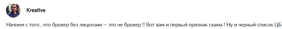 Отсутствие лицензии вызывает большое недоверие, а также признаком скама на платформе называют то, что брокер в черном списке у центробанка.