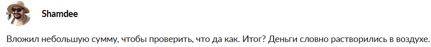 • Отзывы негативные и участники считают проект скамерским, обвиняют в обмане и присвоении средств с баланса клиентов, следовательно, подтверждаются негативные впечатления о репутации проекта.