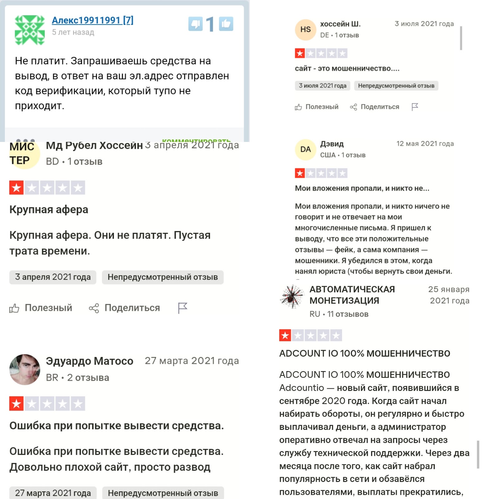 На сторонних площадках мы нашли отзывы о том, что Adcount io занимается мошенничеством, так как вывести прибыль никто не может.