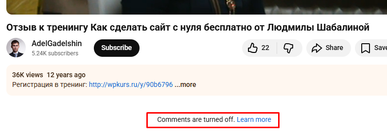 Примечательно, что на своем YouTube канале под видео с отзывом Адель отключил комментарии, таким образом, пресекая появление мнений от других пользователей. Впрочем, под другими видео комментарии вообще никто не пишет.