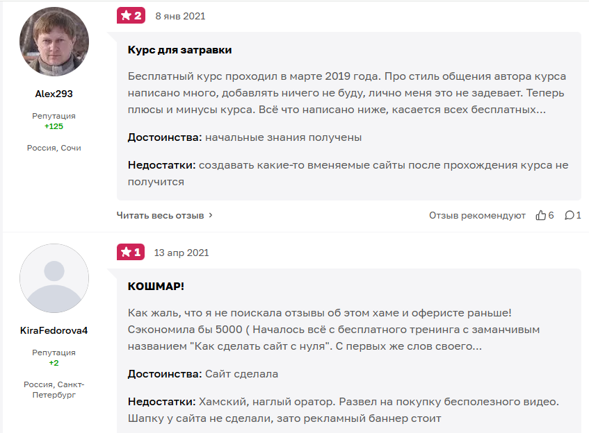 У некоторых юзеров остались негативные впечатления от личности самого спикера. “Развел на покупку бесполезного видео” – подводит итог бывший ученик проекта.