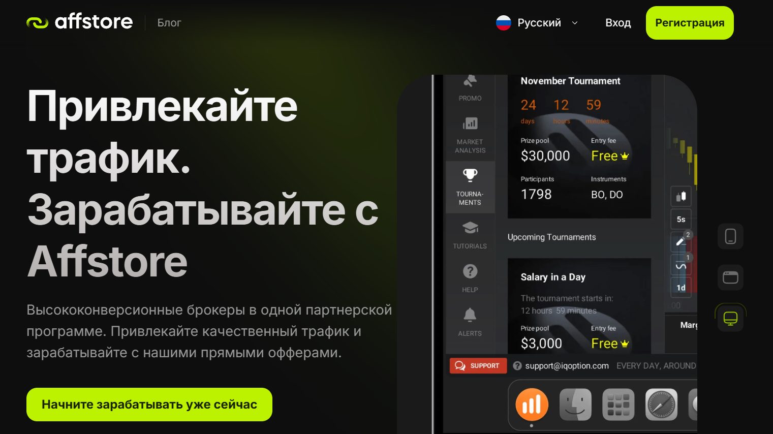 Сервис Affstore является партнерской программой, которая находится в сотрудничестве с различными брокерами. Тут представлены только прямые офферы. Заработок связан с привлечением трафика, что должно обеспечить пользователям больший доход. В этой статье мы рассмотрим. Действительно ли тут можно заработать или это очередной развод.