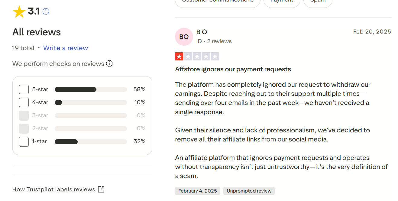 - отзывы о Affstore преимущественно положительные, но периодически возникают проблемы с выводом средств и реферальной программой.