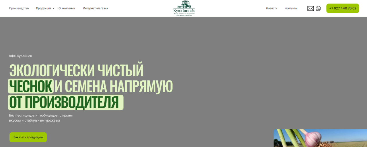 Руководителем «Агро Чеснок Ru» является Кувайцев Павел Сергеевич. Компания занимается сельскохозяйственной деятельностью по выращиванию, переработке и реализации овощной продукции. С 2023 года команда специализируется на промышленном выращивании чеснока. Хозяйство расположено в республике Татарстан. Для своей деятельности компания использует площадь более 300 гектаров. Чеснок выращивается без пестицидов. Применяются современные технологии полива и хранения. Собственный парк техники позволяет обеспечивать стабильные объемы и качество продукции.