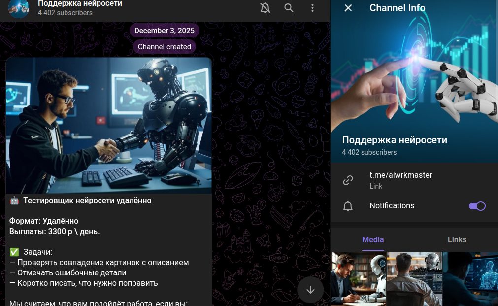 «Тестировщик Нейросети Проверка Изображений»: отзывы о https t me aiwrkmaster, обзор на телеграм с объявлениями