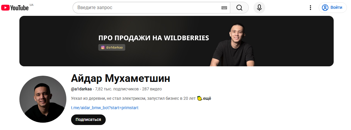 В Телеграме у предпринимателя есть канал и бот, а его аккаунт работает по ссылке @a1darkaa. Но пару лет назад он видимо понял, что можно заработать не только на продаже курсов по работе с маркетплейсами, а еще и на обучении трейдеров. Ну и начал активно продвигать свои «схемы».
