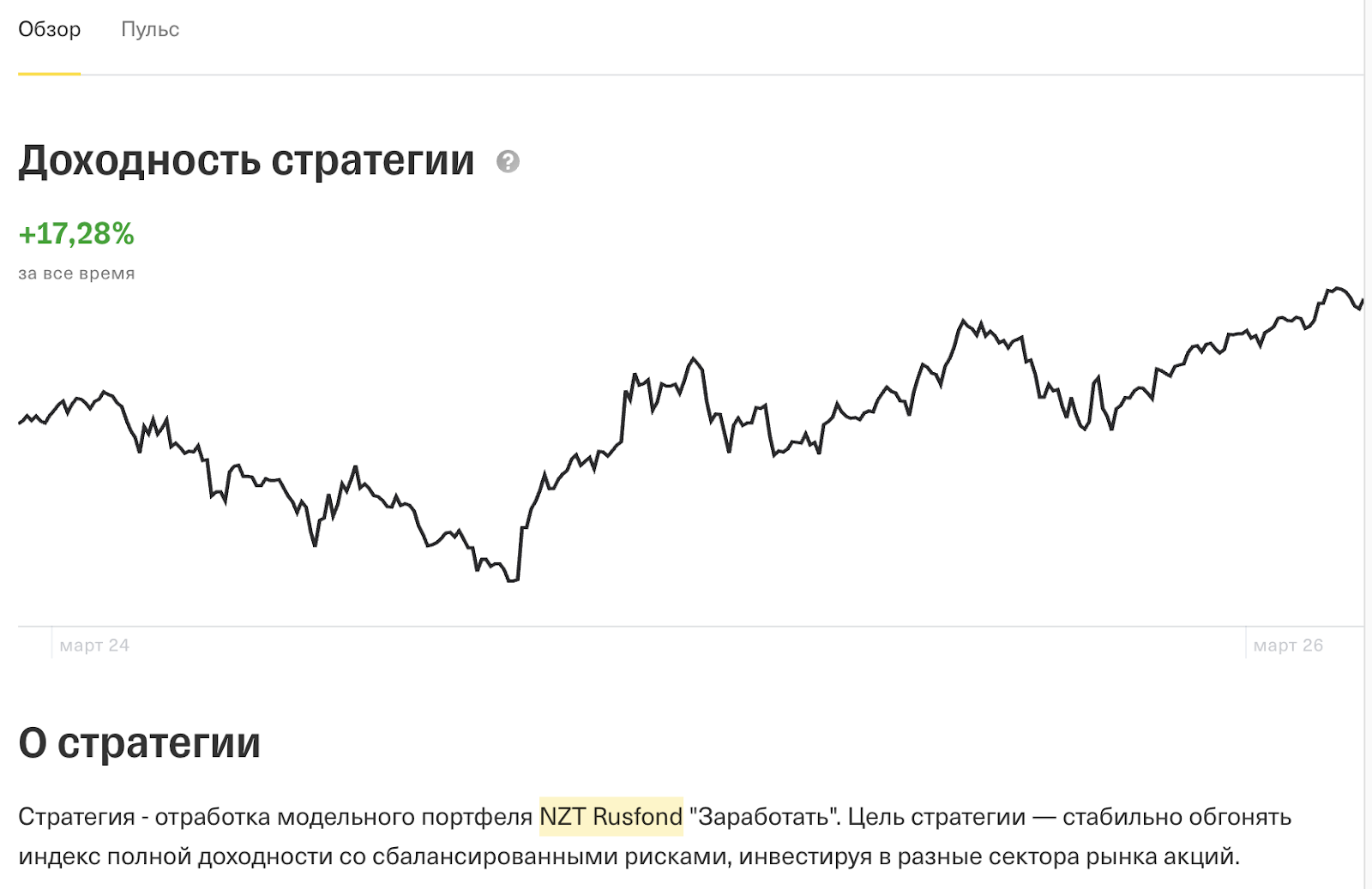 При этом, если верить «Пульсу» от Т-Банка, стратегии аналитика работают. Сформированный модельный портфель NZT Rusfond за время отслеживания на портале принес +17,28%. Это конечно не обещанные 25%+, да и сами авторы оценивают уровень риска как высокий. Следовать таким торговым рекомендациям или нет — каждый должен решать сам.