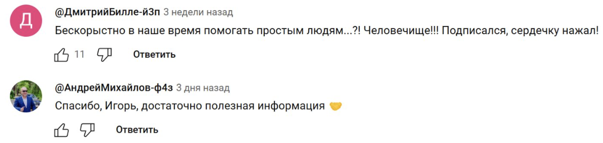 Это подтверждают и комментаторы. Под видео люди благодарят автора за публикуемый им контент и соглашаются с его тезисами.
