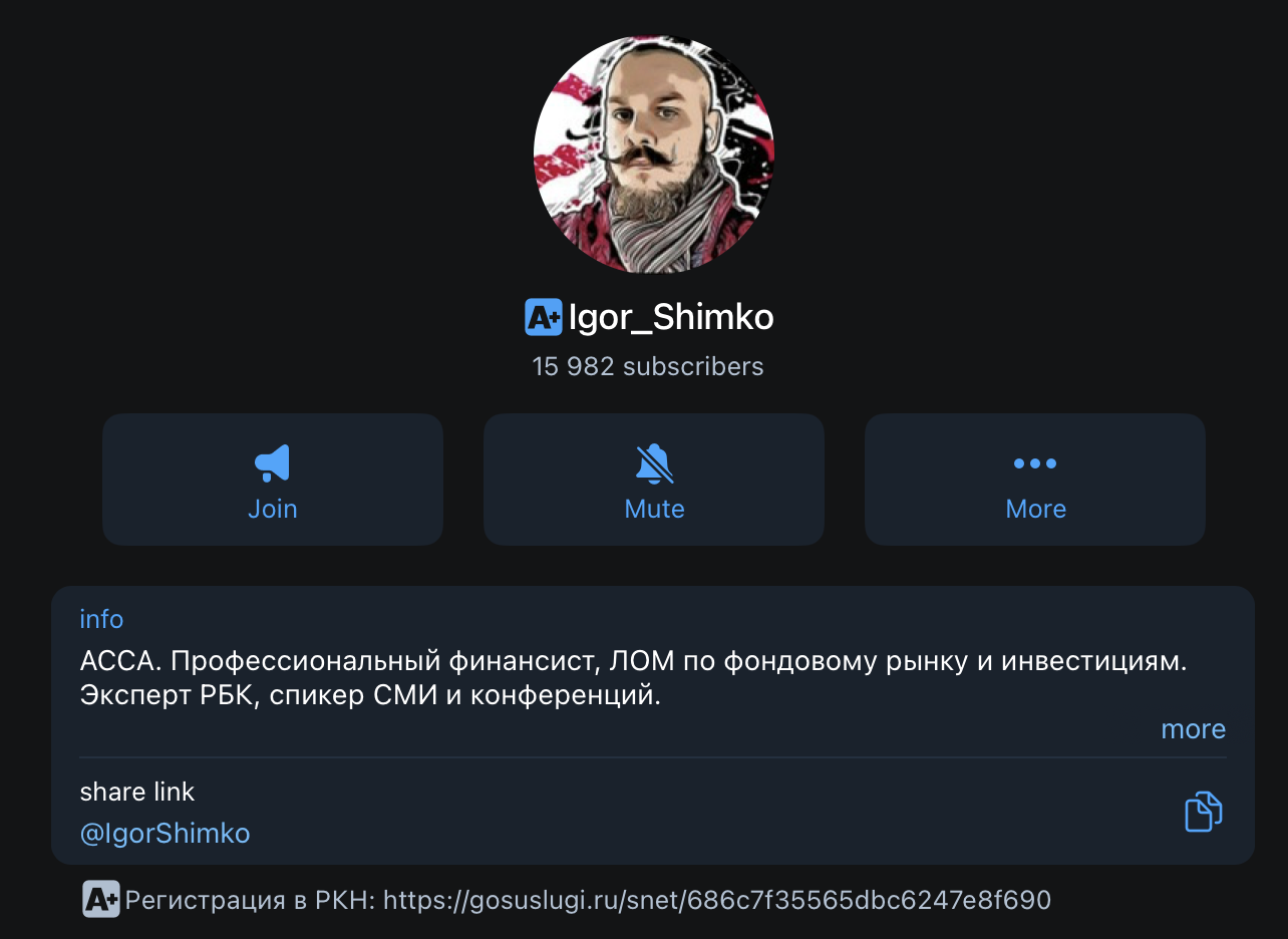 Телеграмм-канал Игоря Шимко