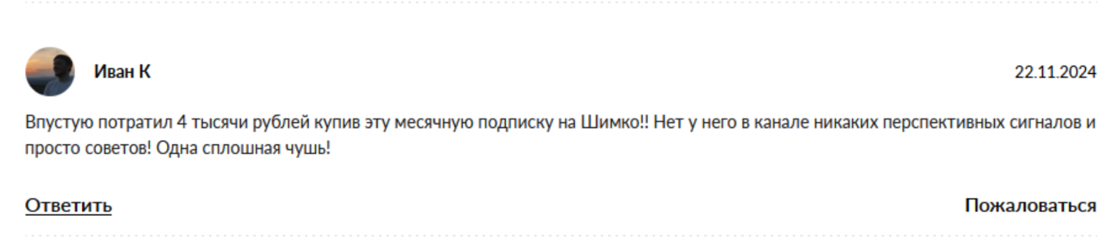- В интернете встречаются негативные отзывы о работе Шимко, в том числе его личных консультациях. Велика вероятность, так же некачественно он предоставляет услугу и в рамках «Менторского сопровождения».