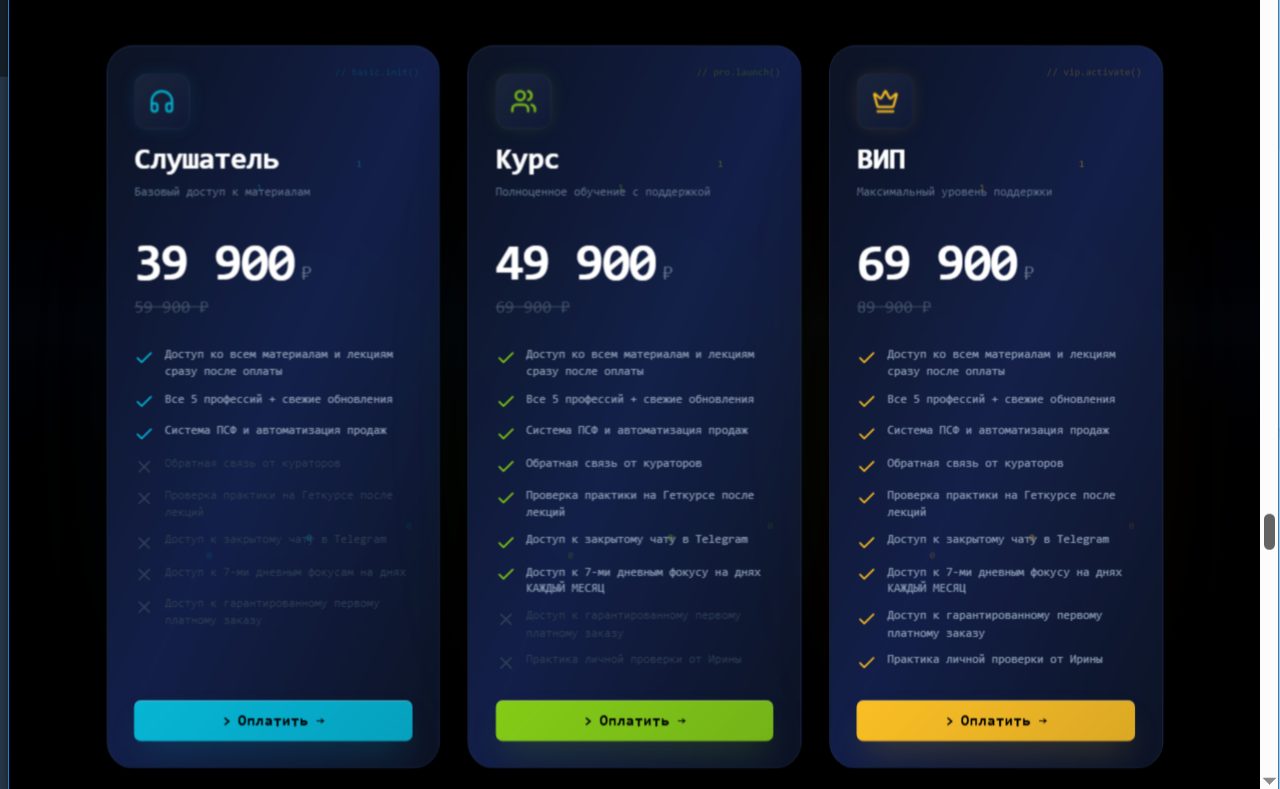 До появления Эдгарда Коцана, Ирина требовала значительные суммы за свое наставничество. За три месяца сопровождения она хочет 300 тысяч, за полгода – 600 000. Теперь аппетиты значительно уменьшились. За обучающий курс Cumom Academy Ru Ирина и Эдвард хотят от 39 900 до 69 900, зависит от выбранного тарифа.