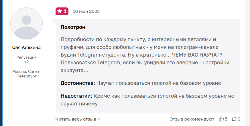 Мониторинг независимых интернет-источников показал, что реальная картина совсем другая. Пользователи жалуются, что им предлагают знания, которые есть в свободном доступе. Всю информацию можно найти самостоятельно буквально за полчаса.