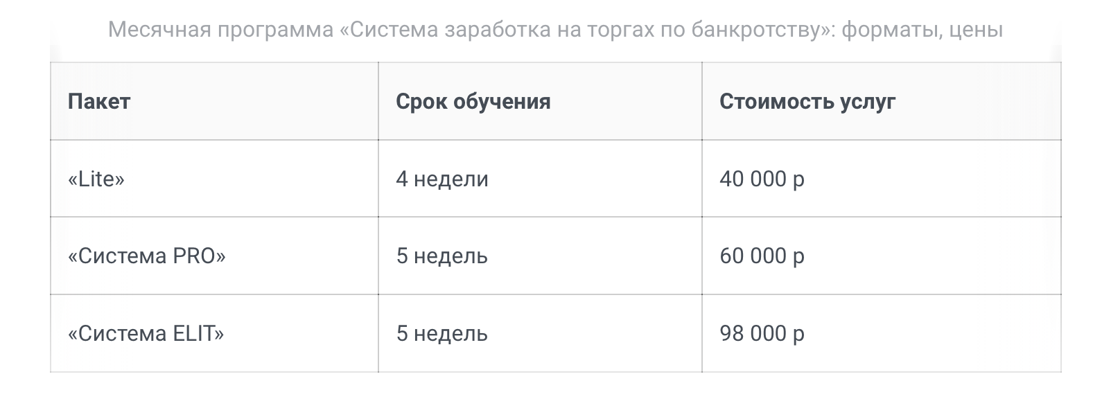 Олег Селифанов «Торги по банкротству» предлагает также в формате коротких курсов на 4–5 недель, которые все равно обходятся в 40–100 тысяч. Цифры внушительные, особенно если учесть, что это не вуз и не аккредитованное образование, а просто набор видео, шаблонов и чата.