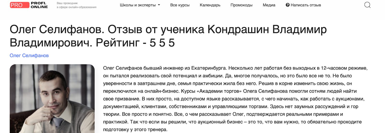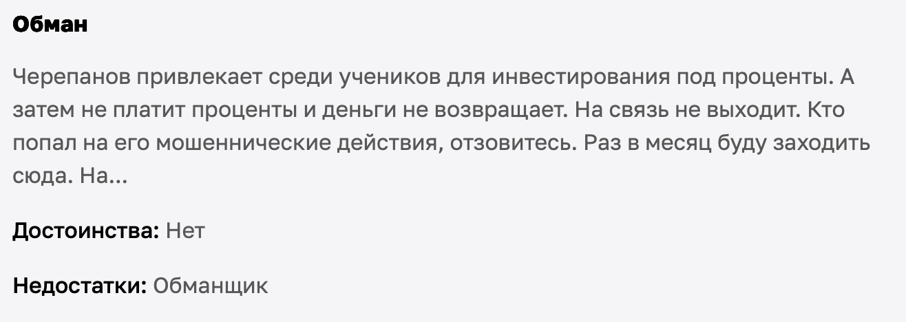 На других площадках встречаются истории, что Олег Селифанов больше рассказывает про психологию и уверенность, чем про конкретные рабочие схемы. Кто-то даже назвал это типичным инфобизнесом: красиво упаковано, но на выходе — пустышка.