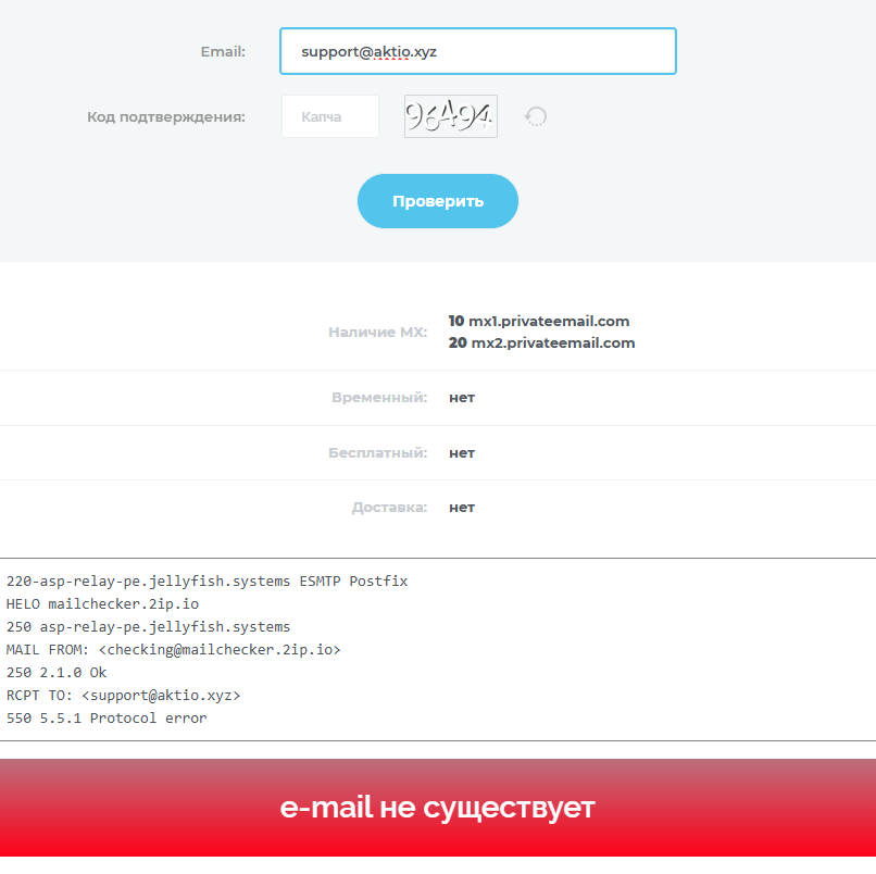 Проверка адреса показывает, что по нему нет такой компании, а email support aktio xyz просто не существует: