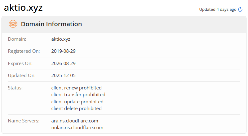 Да, домен основного сайта работает с 2019 года, но это все еще не 2017. Однако более интересна дата апдейта – 5 декабря 2025 года. Она совпадает с датой апдейта домена связанного сайта:
