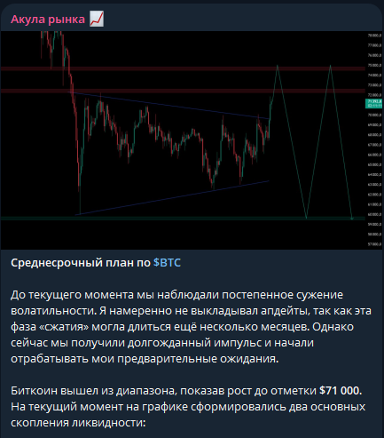 Автор канала «Акула рынка» активно продвигает биржу Toobit и призывает всех регистрироваться только там.