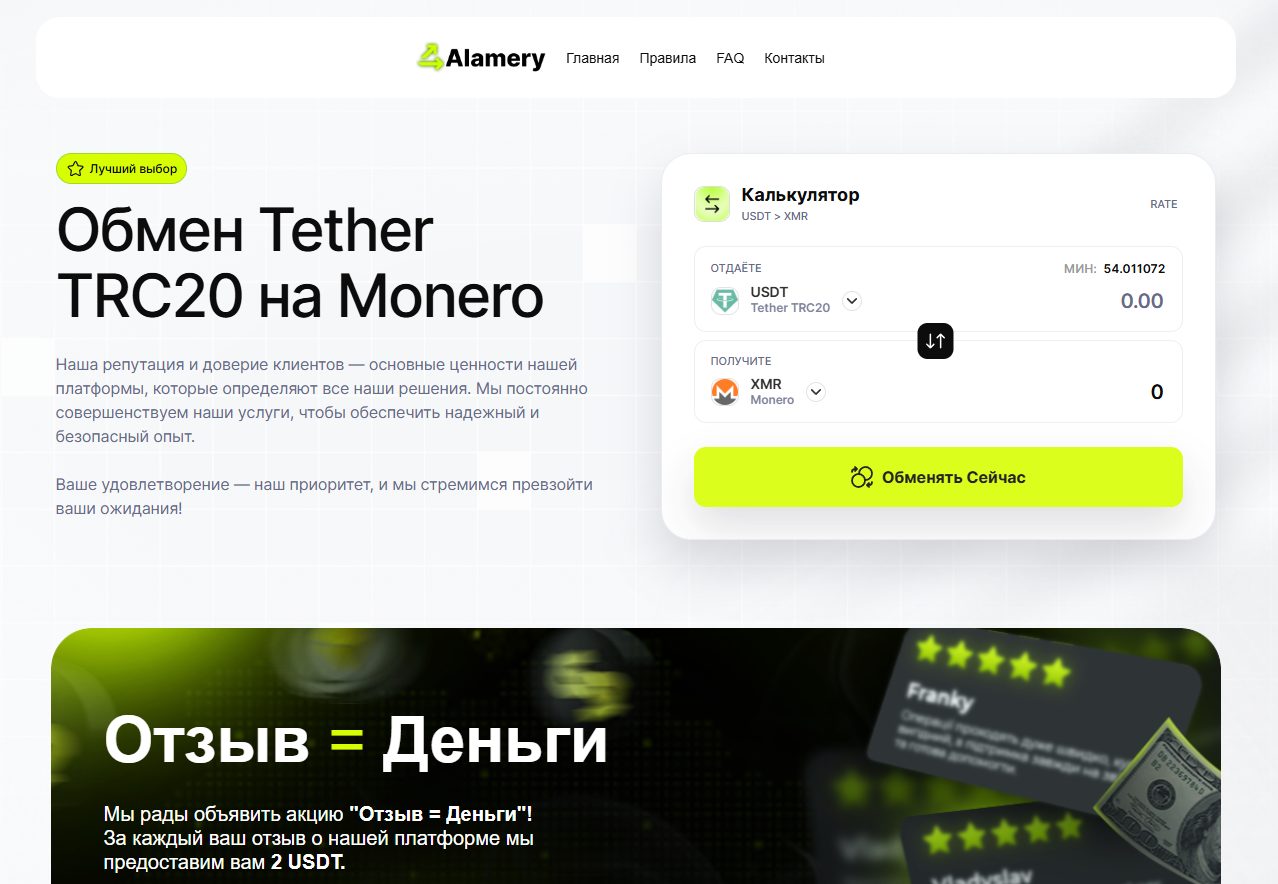 Alamery – обменник для криптовалют для быстрого обмена крипты с низкими комиссиями и удобным интерфейсом. В статье разберем, что за компания стоит за этим проектом, изучим условия соглашения и выясним, что говорят клиенты об «Аламери ком».