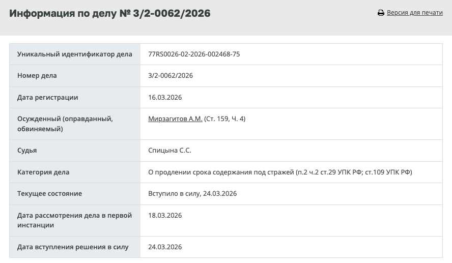 На 3 апреля 2026-го года, когда наша редакция работает над этим материалом, Альберт находится под стражей. В последний раз это решение было продлено 24 марта 2026-го года.