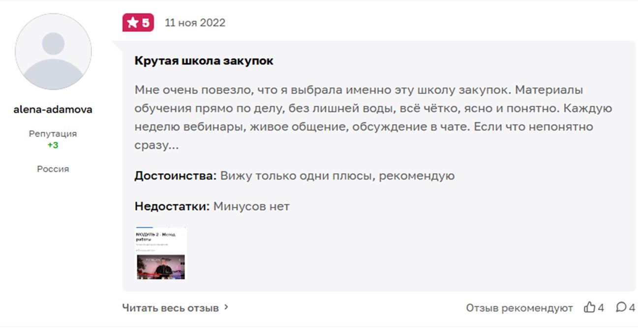 На курсы по госзакупкам Александра Перфильева отзывы противоречивые. Но важно отметить, что отрицательных мнений в разы больше. Ученики сходятся во мнении, что курс не стоит своих денег, а Александр не дает стоящей информации. В итоге деньги потрачены зря.