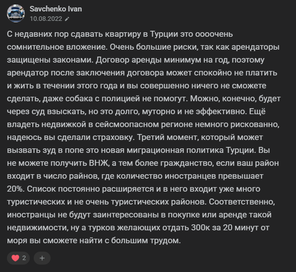 Никаких услуг, советов или чего-то подобного от трейдера мы не нашли. Возможно, приобретение квартиры в Турции некоторые могут воспринять как рекомендацию, но вряд ли блогер может иметь с этого какую-то выгоду.