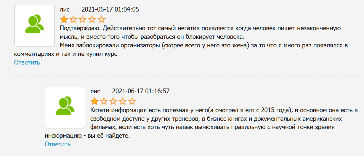 Таким образом, совершать покупки обучения у данного коуча мы не рекомендуем.