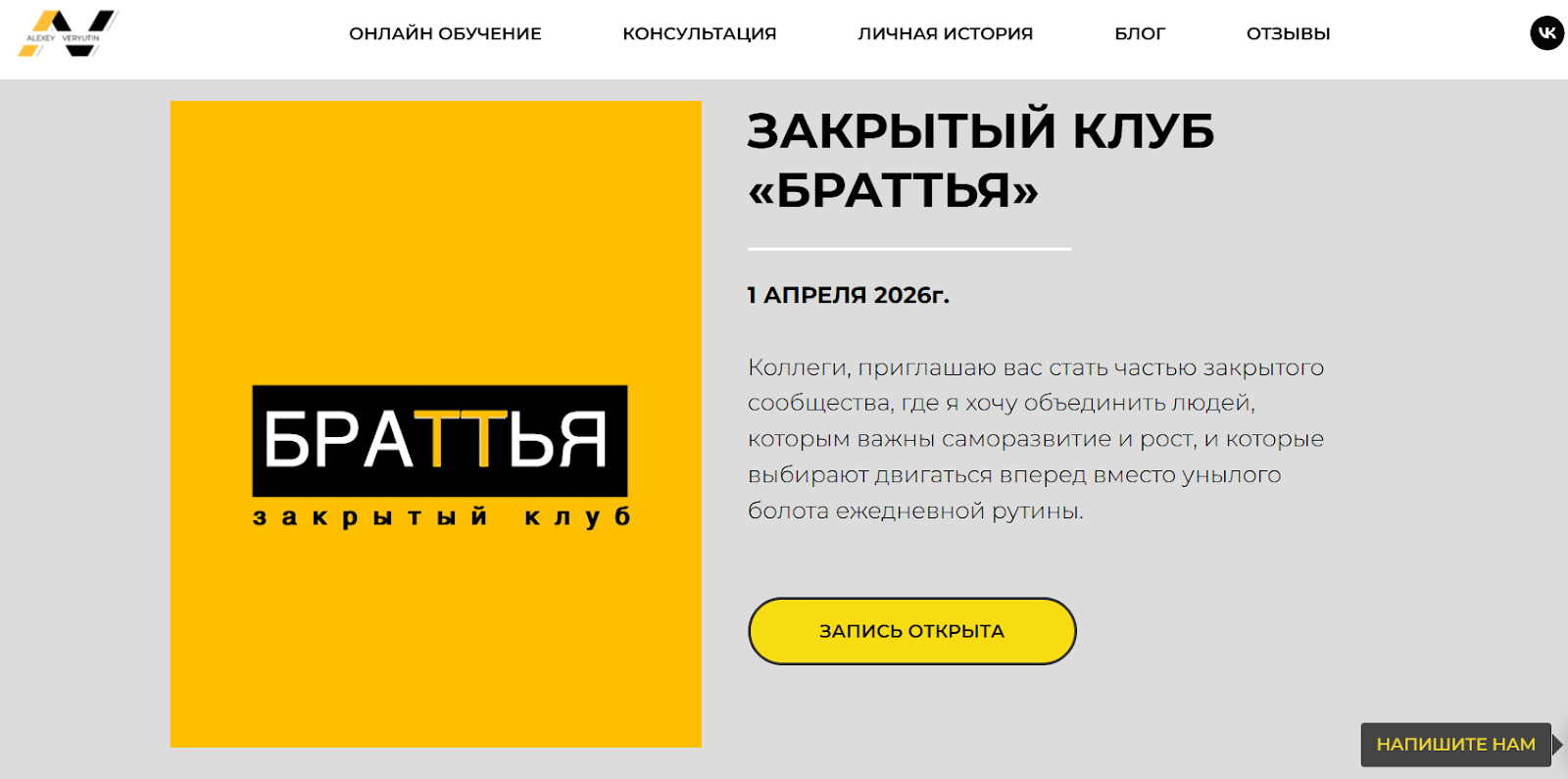Алексей Верютин – это инфобизнесмен и коуч, который продвигает обучение заработку и развитию собственного дела через закрытое сообщество «Бизнес Клуб Браттья». В своих материалах он делает упор на окружение, мышление и быстрый рост дохода, обещая участникам помощь в запуске и масштабировании бизнеса.