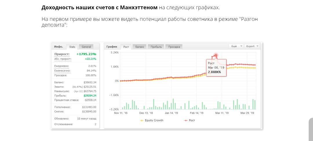 • Советники активно используют мартингейл и усреднение, получается просадка может оказаться глубже обещанных значений, а значит клиенту Алексея Седых стоит быть готовым к полной потере вложений.