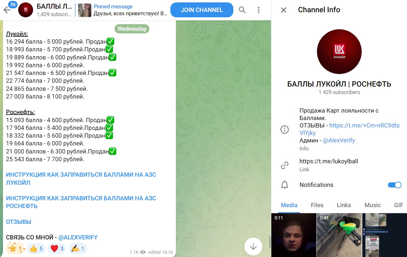 Обзор сообщества в Телеграмме Lukoylball: отзывы о проекте, выгодно ли покупать карты лояльности у Alexverify