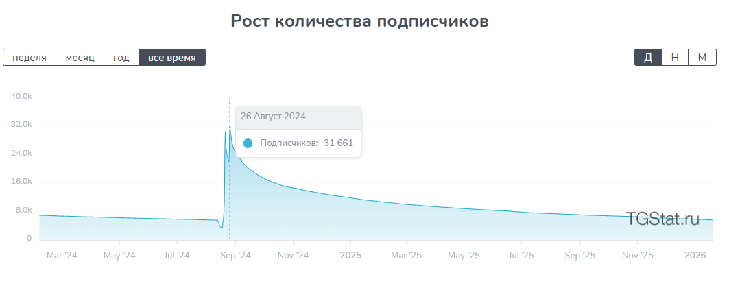 Аудитория на конец января 2025 года составляет 5,5 тысячи человек. Но просмотры публикаций редко переваливают за сотню. Поэтому можно предположить, что здесь очень много ботов.