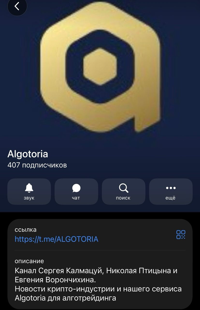 Больше о работе проекта можно узнать из канала в Телеграме Algotorianews. Но вот только подписано на него всего 400 пользователей. В аккаунте регулярно публикуются новости крипторынка, торговые показатели трейдеров, подключивших программу для торгов.