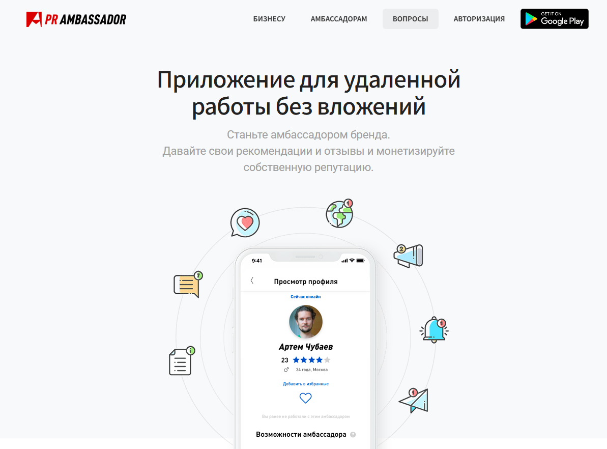 Если верить описанию на сайте pr ambassador com, «Амбассадор» дает заработок через доступ к простым заданиям. В списке задач указаны: