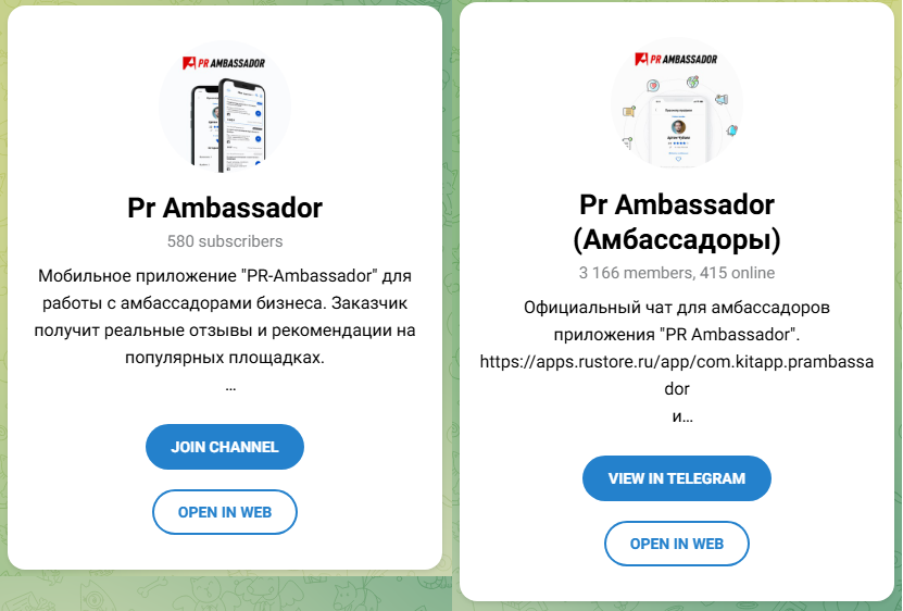 У сервиса есть официальный телеграм-канал с аудиторией около 580 человек, где публикуют новости проекта и обновления о работе приложения. Отдельно представлен крупный чат. В нем состоит примерно 3166 участников, из которых около 400 постоянно находятся онлайн. В чате пользователи обсуждают работу площадки, делятся жалобами, лайфхаками, помогают друг другу разобраться в заданиях и выводе средств. Раньше существовал также телеграм-бот Ambassador для уведомлений о новых заданиях, но на ноябрь 2025 года он не функционирует.