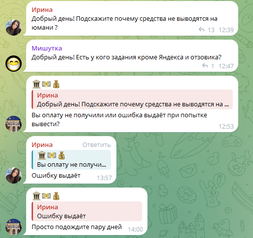 • Задержки и проблемы с выводом денег: о них постоянно упоминают пользователи в ТГ-чате;