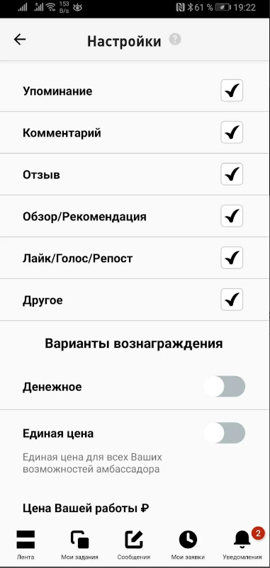 Размер дохода в PR Ambassador напрямую зависит от того, насколько популярны аккаунты самого исполнителя: чем больше подписчиков и чем сильнее их активность в соцсетях, тем выше стоимость заданий. При этом сервис позволяет выставлять свою минимальную цену, чтобы отсекать дешевые предложения и общаться напрямую с заказчиками через внутренний чат.