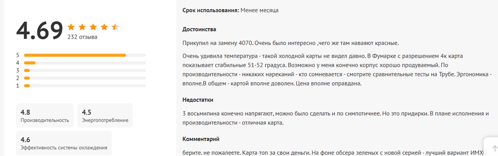 На AMD Radeon rx 9070 xt отзывы, в целом, неплохие. Но важно понимать, что положительные отзывы оставлены геймерами. И то, в некоторых мнениях есть замечания о том, что с настройкой видеокарты возникли сложности.