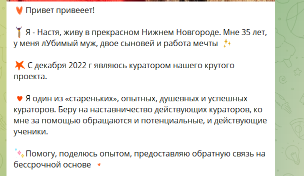 Нафиг называть это обучением если по факту мне только материалы скинули а изучать все это я должен был самостоятельно. Даже никаких вебинаров не было тупо текстом все инструкции и чаты с другими учениками. Самой Анастасии Латухиной вопрос никаких задавать нельзя было хотя сказали что поддержка будет но по факту нет не было вообще.