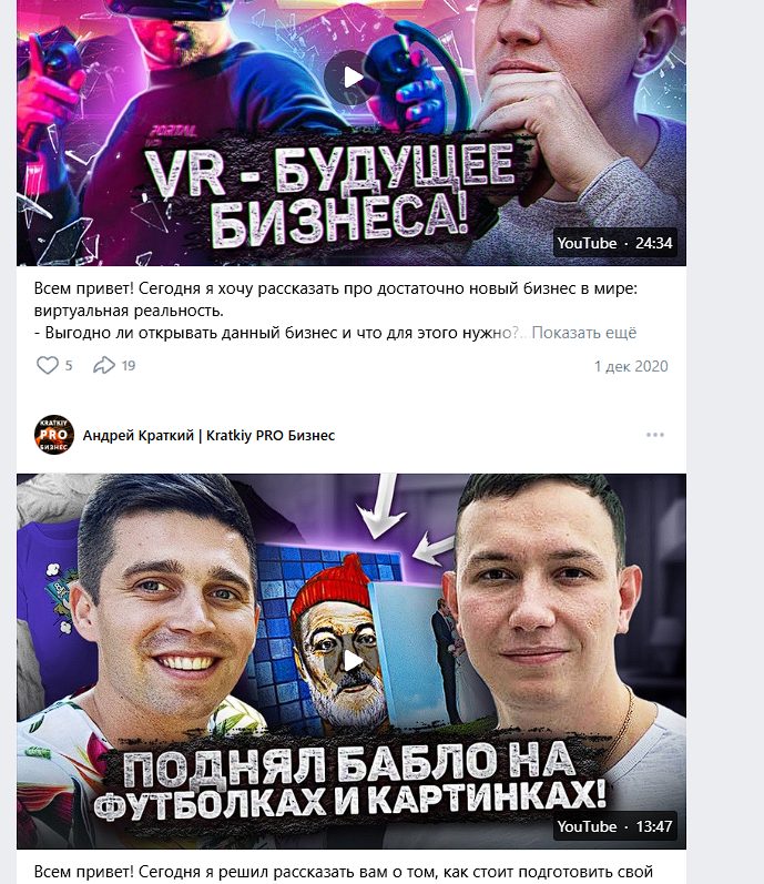 Примеры публикаций ВК. Автор активно продвигал свой «Ютуб», сопровождая ролики цепляющими описаниями.