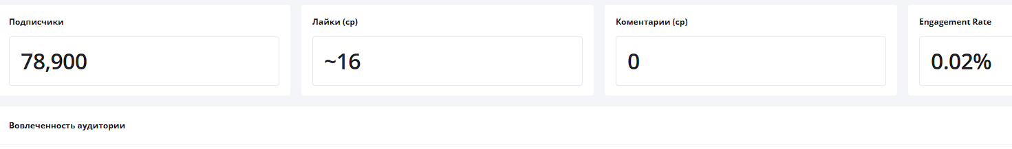 Скрин с LiveDune, который отображает низкую активность подписчиков. Большинство публикаций не набирает и 100 лайков.