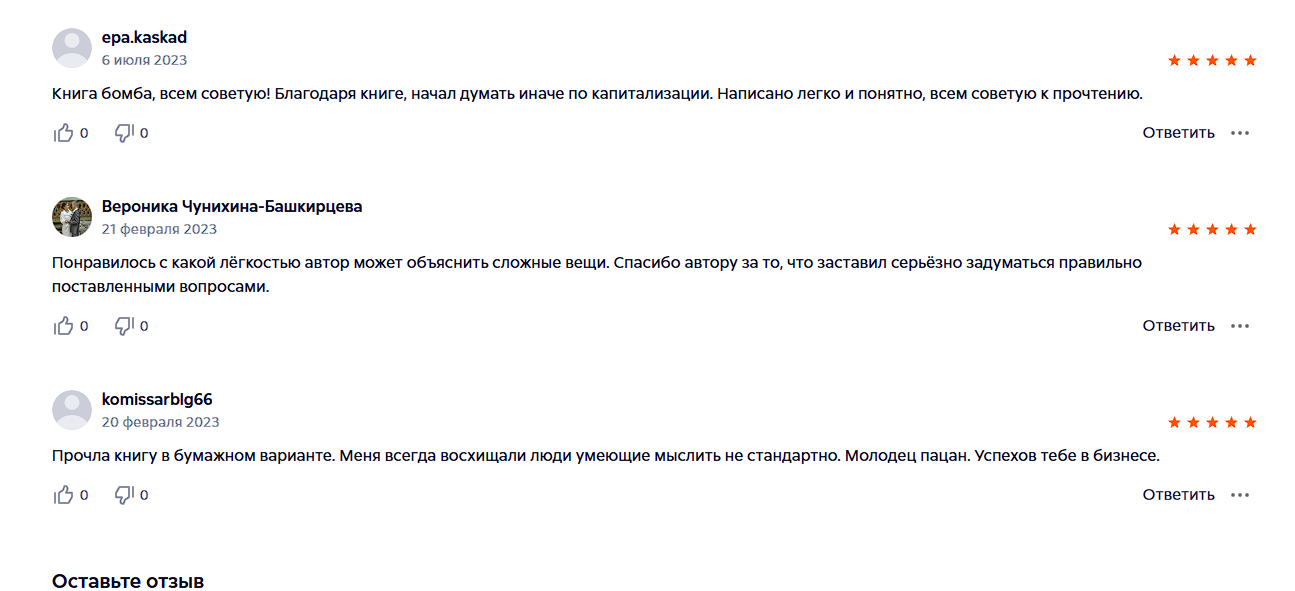 Вторая книга, «Ты легко сможешь накопить капитал!», также имеет несколько положительных отзывов. В них пользователи советуют данную литературу к прочтению: