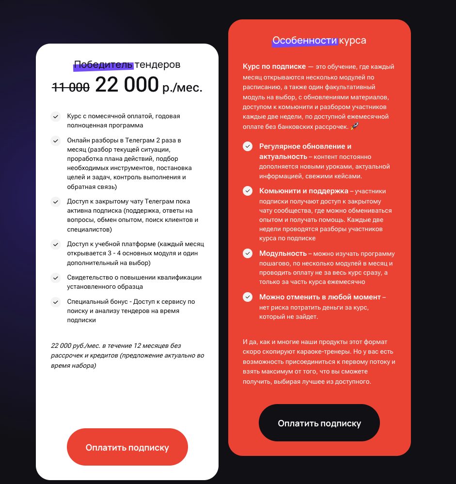 Там же продается курс по подписке: