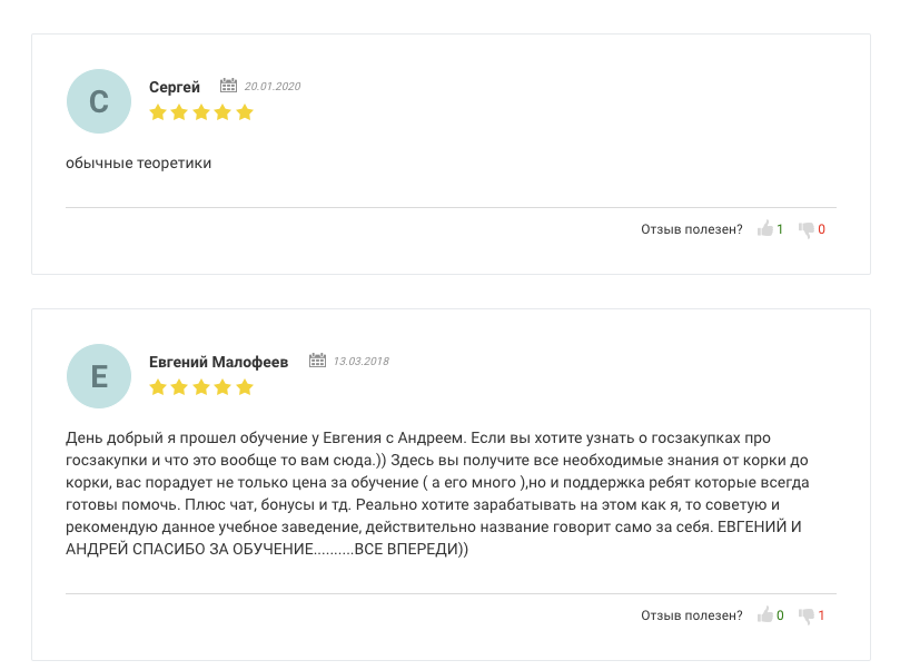 В сети почти нет отзывов о работе данного автора. Нам удалось найти лишь 2 отзыва, которые связаны с его курсами по тендерам. Они весьма противоречивые: