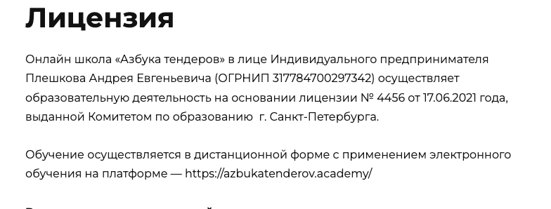 Платформа работает от лица ИП Плешкова Андрея Евгеньевича: