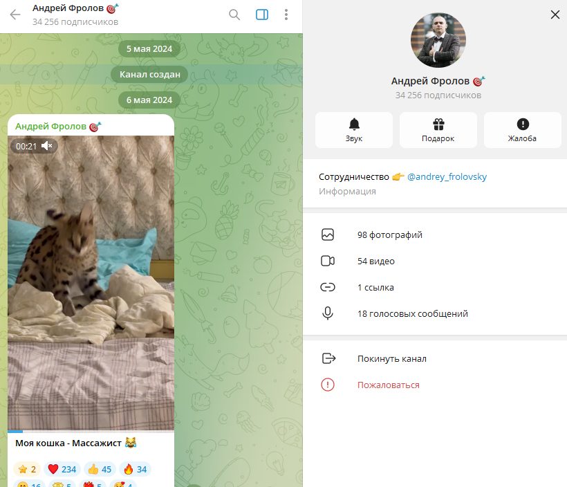 Сообщество, в котором автор занимается раздачей, называется Андрей Фролов. Канал был создан в мае 2024 года, при этом посты выходили со значительными перерывами. Возможно, что большая часть постов попросту удаляется.