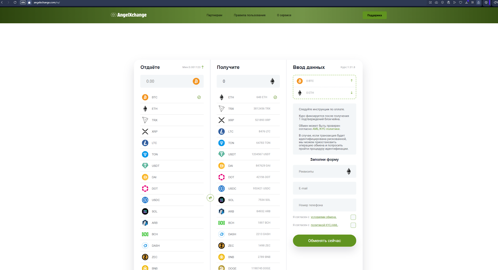 AngelXchange com отзывы получил негативные. Он позиционируется как быстрый онлайн-обменник криптовалют, где обещают выгодный курс и отсутствие обязательной регистрации. В этом обзоре мы подробно посмотрим, как устроена работа сервиса и чем он может заинтересовать трейдеров. Выясним, есть ли у него лицензии, какие преимущества заявлены и стоит ли пользоваться услугами.