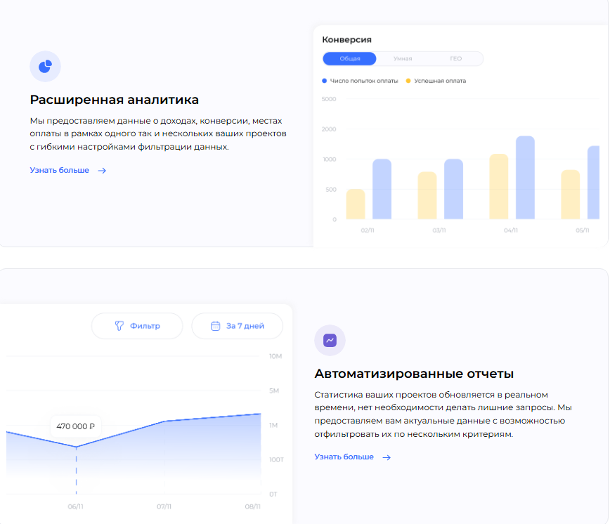 - расширенную аналитику о прибыли, конверсии, географии плательщиков;