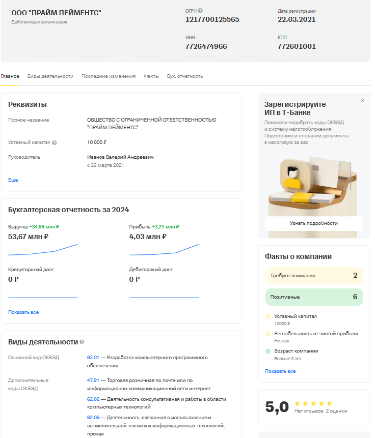 На сайте платежной системы указано, что она принадлежит ООО «Прайм Пейментс». Такая организация действительно существует, работает с 2021 года. В интернете о сервисе «Антилопэй» упоминается часто, включая авторитетные источники, например, сайт «Т-Банка». Нет сомнений, что фирма легальная.