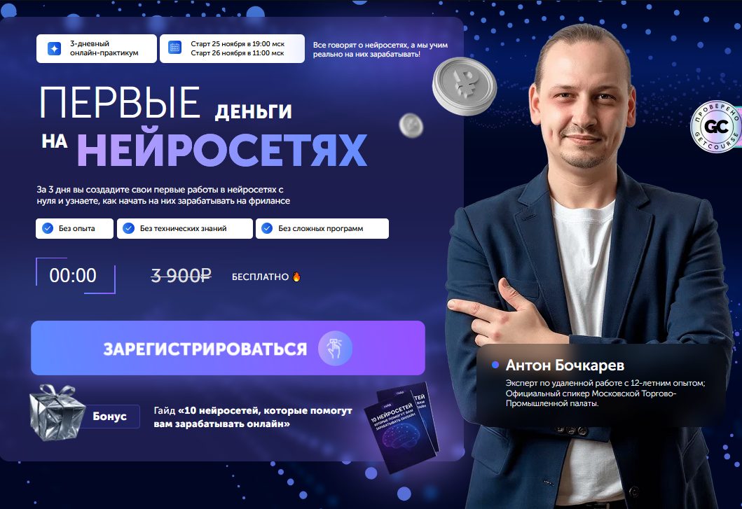 Антон Бочкарев – один из преподавателей школы University Praktik Pro. Заявляет о большом опыте в онлайн-бизнесе и свыше 20 активных проектах, приносящих высокую прибыль. Предлагает обучение по заработку на удаленной работе, является действующим президентом клуба Удаленщики. Читает лекции по направлению Нейросети.
