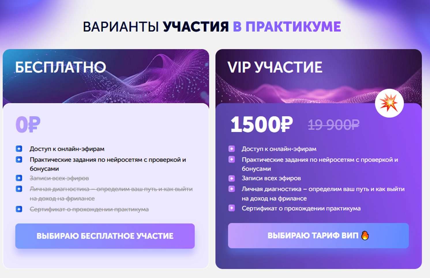 По всем вопросам рекомендуется писать на электронную почту info praktik pro ru. Участие в практикуме доступно в двух форматах – бесплатно и VIP. В первом случае слушатель получает доступ к эфирам онлайн и практическим занятиям с последующей проверкой. Для участников ВИП программы дополнительно предлагаются записи эфиров, проведение личной консультации и выдача сертификата о прохождении курса.